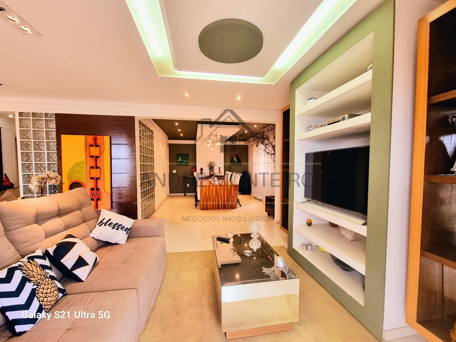Sala enorme com 3 ambientes distintos: estar, jantar e TV. Sacada ampla e muito ventilada com vista livre de tirar o fôlego. Da sala de jantar é possível acessar a cozinha que tem espaço de sobra, está repleta de armários embutidos e tem janela sobre a pia propiciando muita ventilação natural.