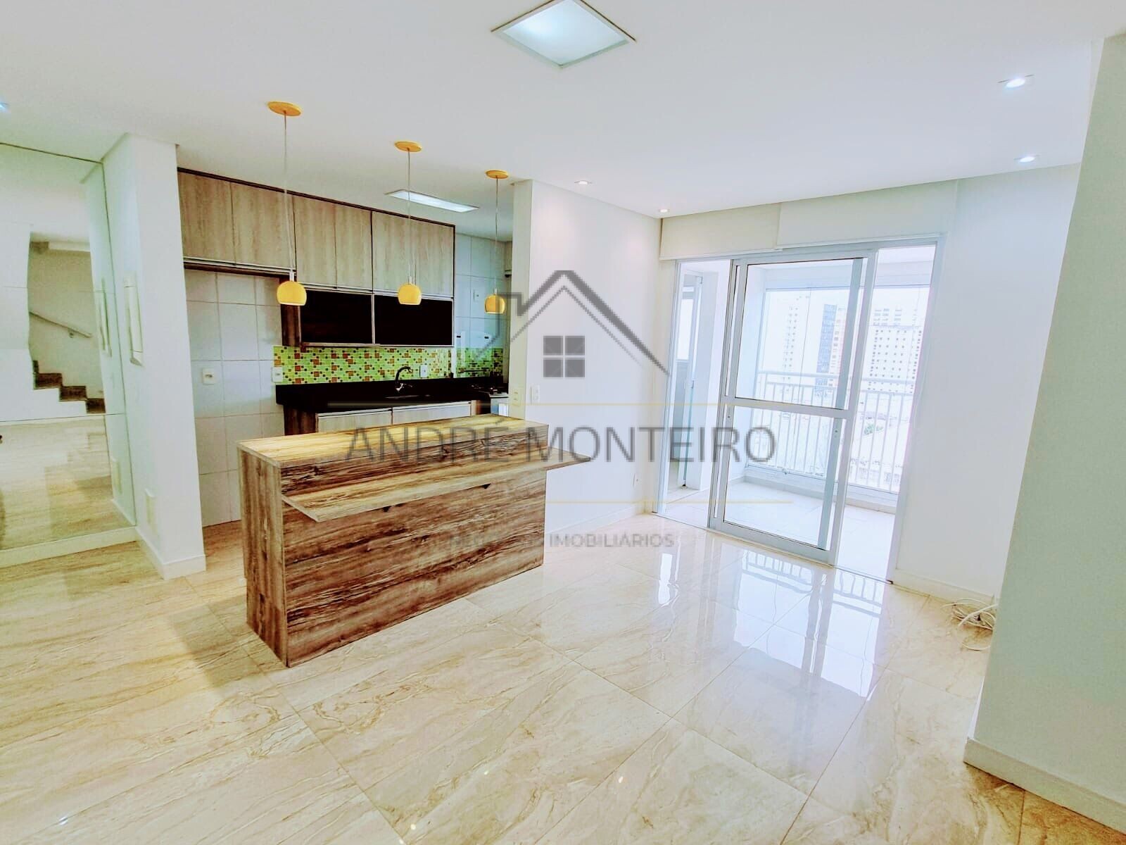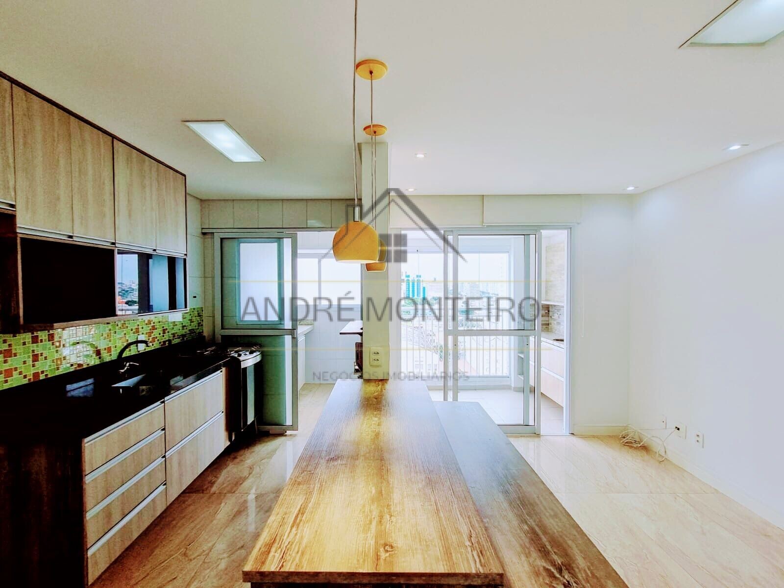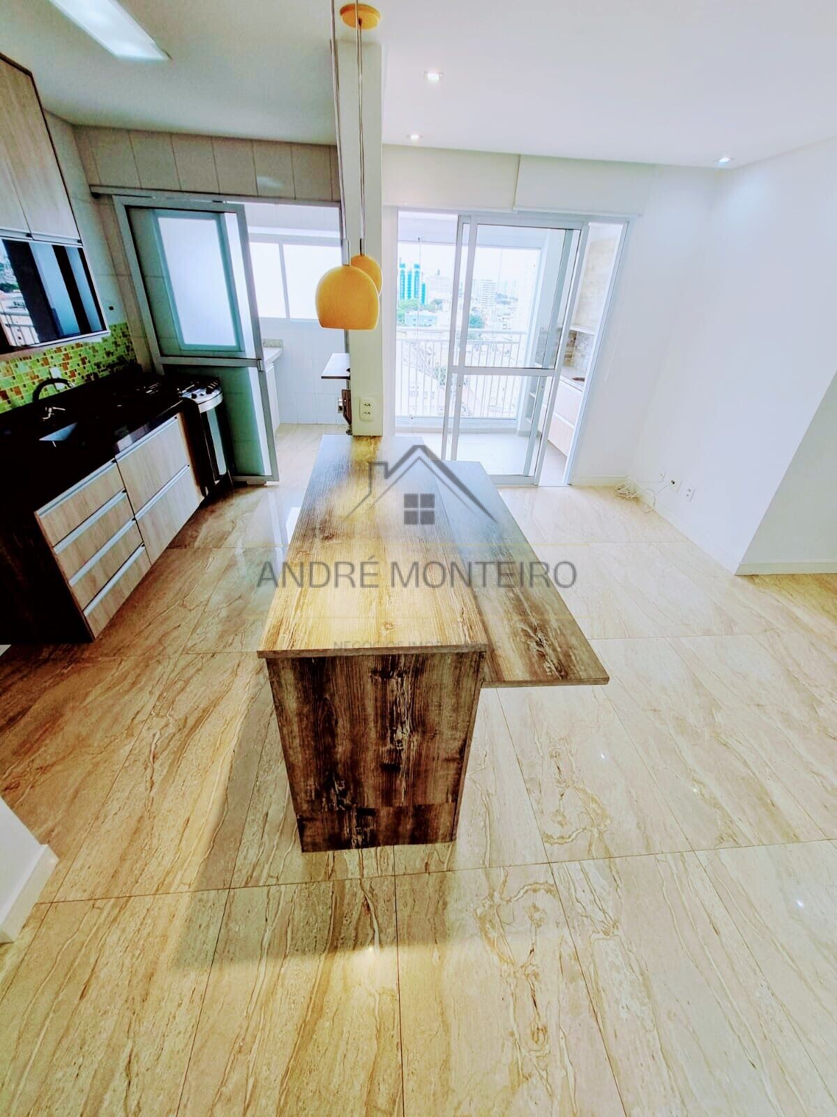 Sala com terraço gourmet, cozinha, área de serviço, banheiro social, 2 dormitórios, sendo 1 suíte